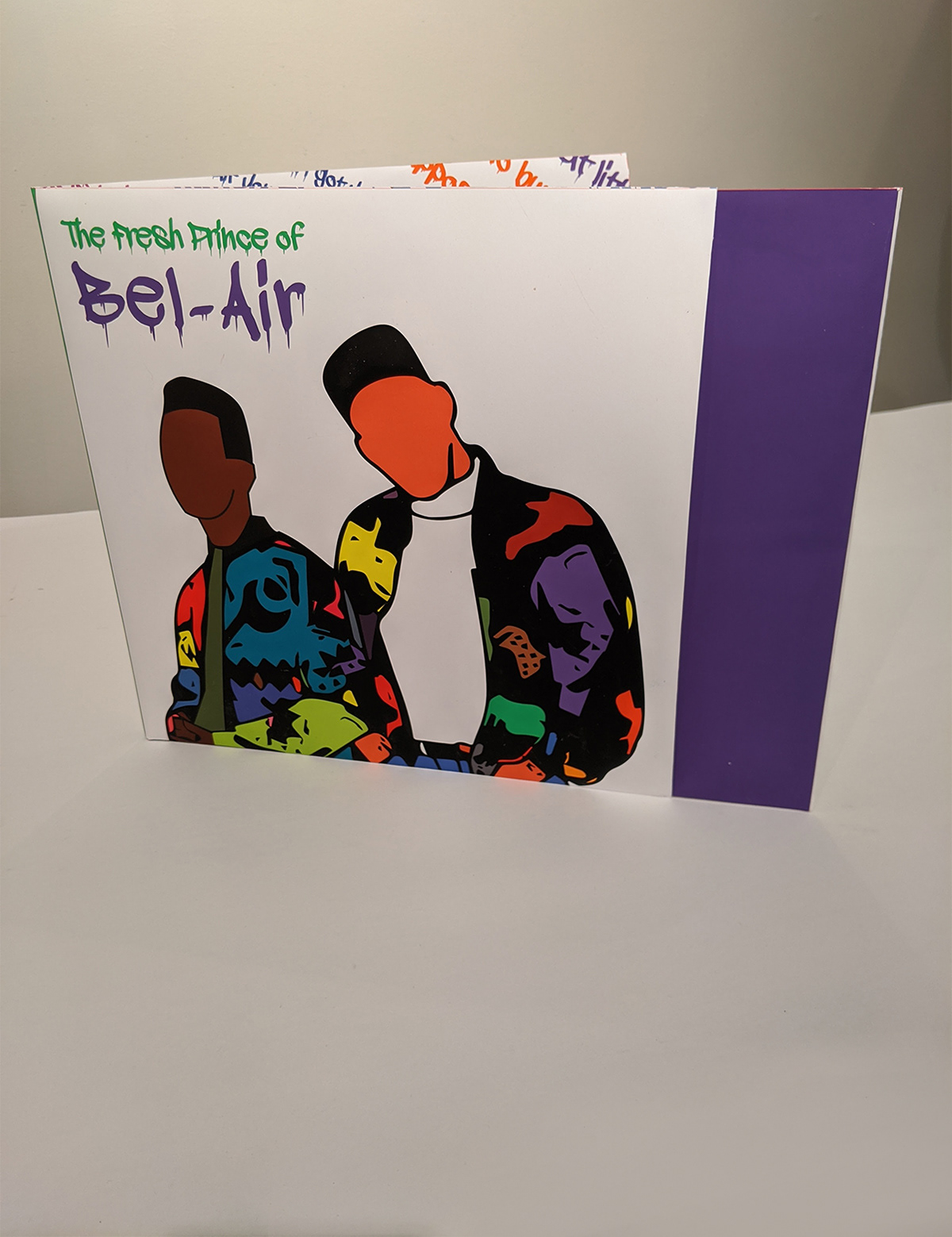 The Fresh Prince of Bel-Air Vinyl Album is a conceptual record made in honor of one of my favorite shows. The record is composed of songs both from the show, as well as rapping duo Will Smith and Jazzy Jeff. The color palette is bold, bright and vibrant, as a tribute to the '90s, during which the show was on the air. The illustrative style was done entirely on Adobe Illustrator, using the pen tool to trace the images above in order to achieve the front cover and the gatefold of the cast. The back cover displays the iconic snap from Jazz and Will's handshake in the TV series, as well as a portion of the lyrics to the theme song. The gatefold's background is composed of a medley of some of the show's most iconic quotes. The final output was a printed and built composition.